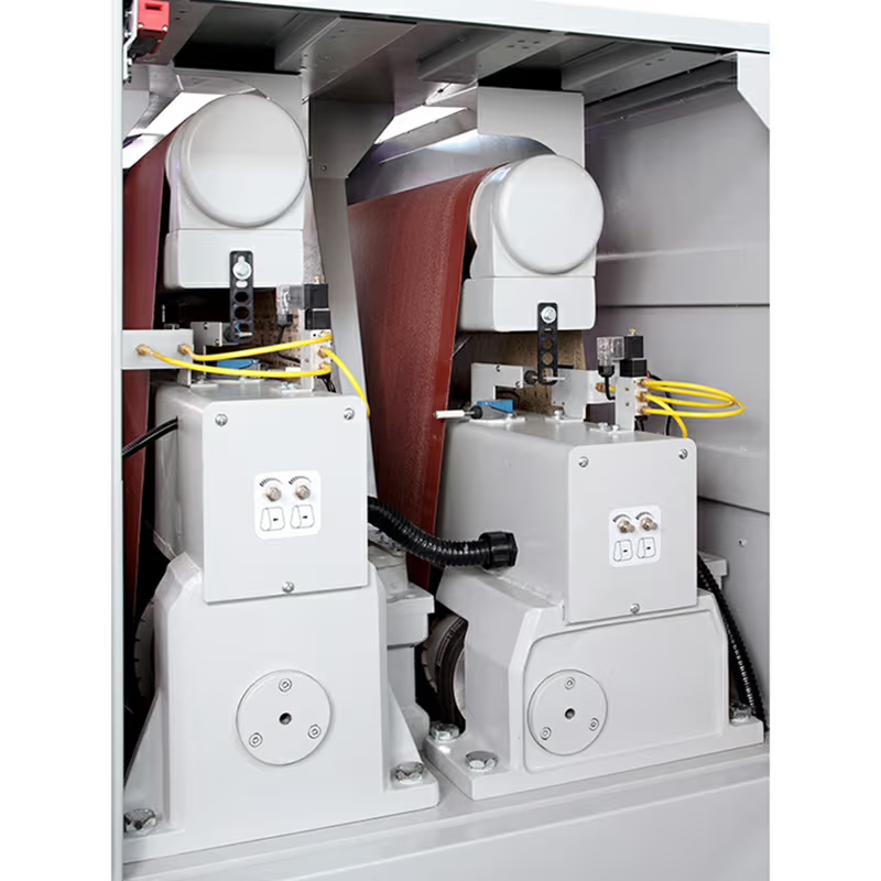 Hệ thống 2–3 trục chà nhám sử dụng băng nhám có độ hạt khác nhau (thô đến tinh), đảm bảo bề mặt sản phẩm được xử lý nhẵn mịn, đều màu và sẵn sàng cho các bước sơn phủ hoặc hoàn thiện cuối cùng.